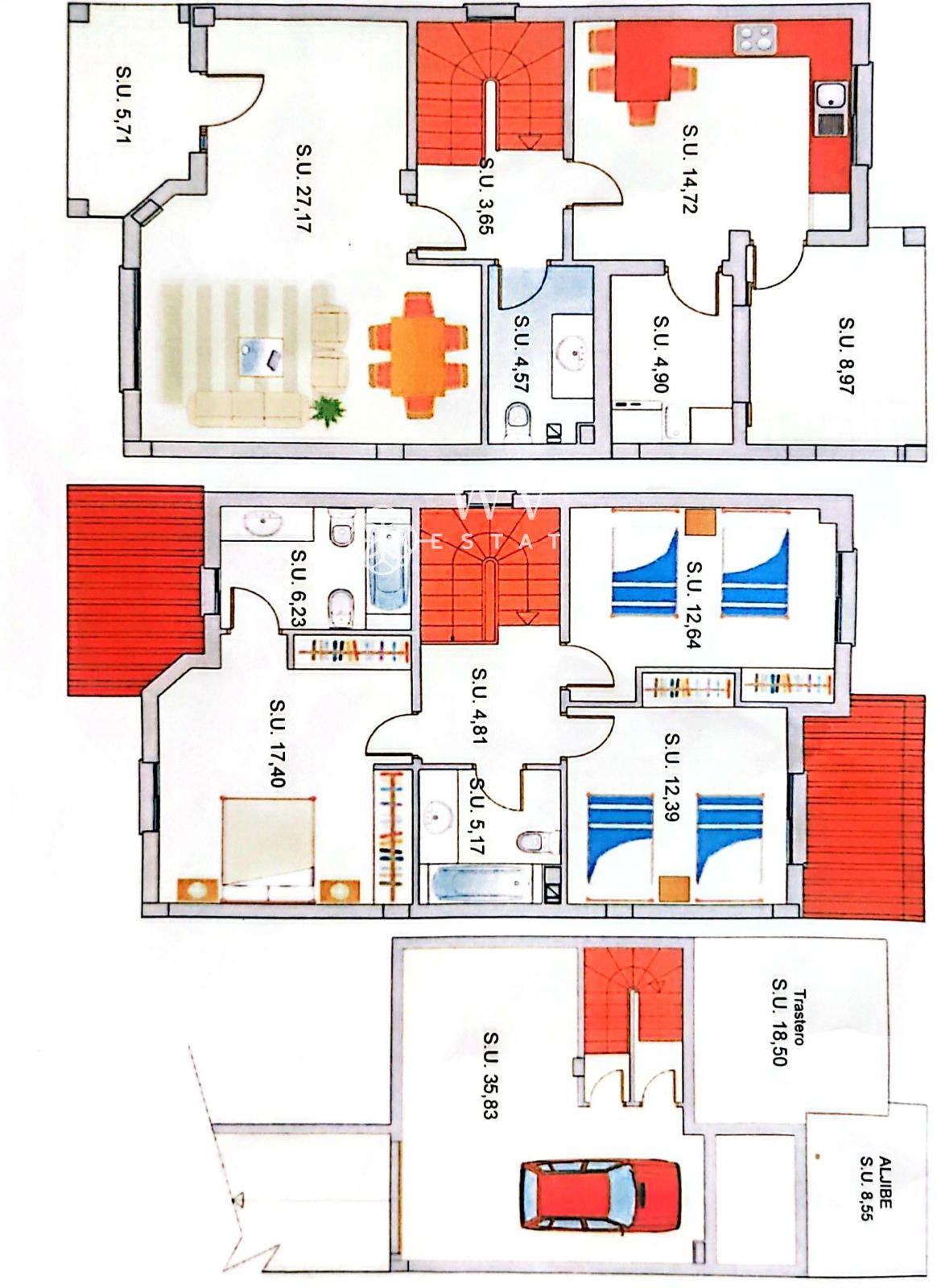On the UPPER FLOOR, there is the master bedroom with an en-suite bathroom, as well as two double bedrooms and a full bathroom.