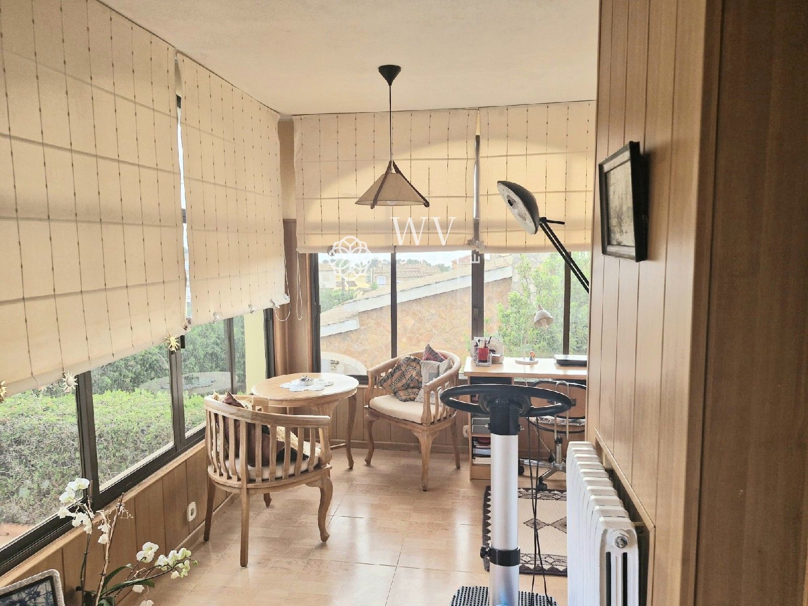Una habitación, que se utiliza actualmente como una oficina, tiene vistas al mar.