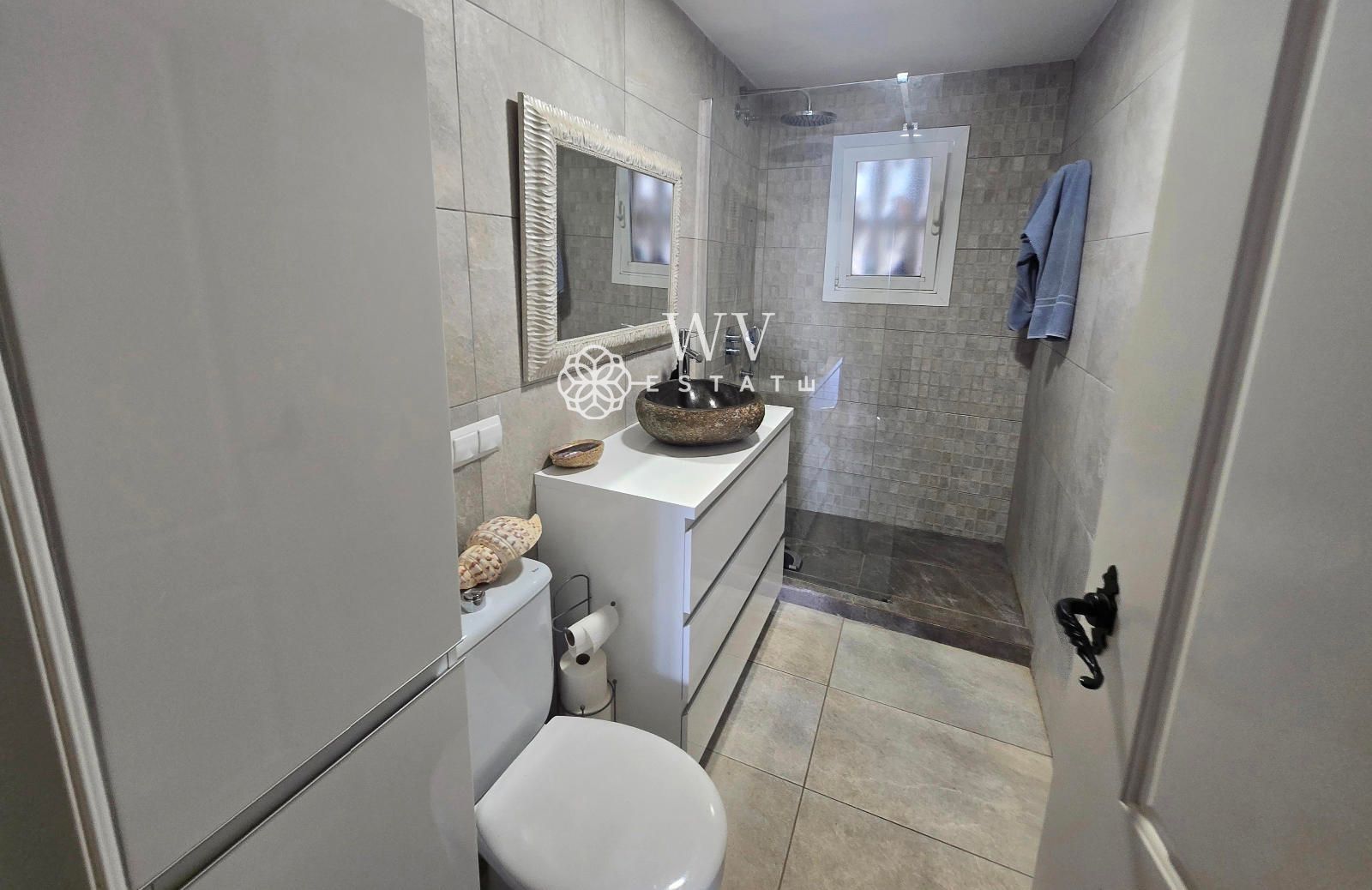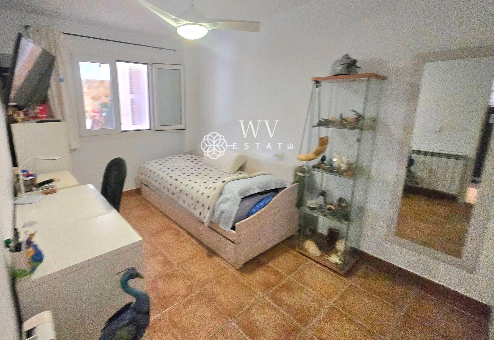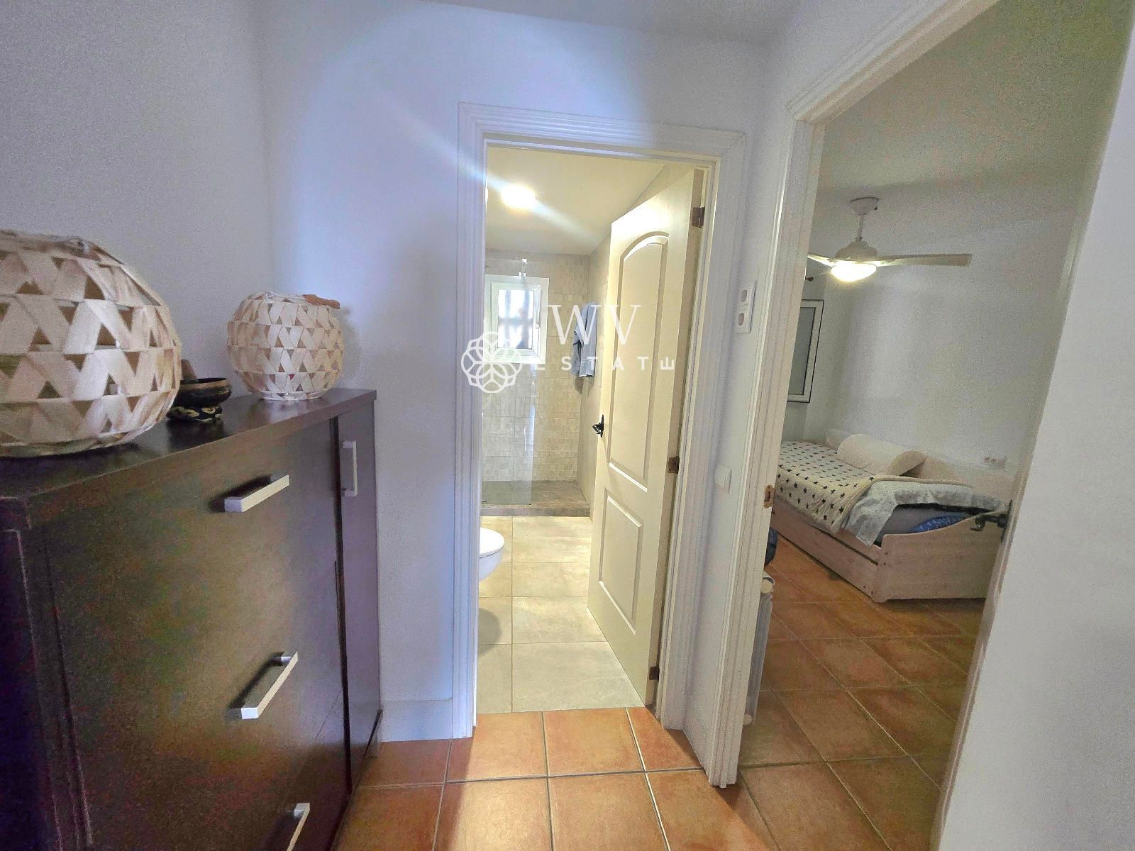 - Terraza trasera con una bonita habitación doble de unos 20 m² con cuarto de baño propio (con ducha). La habitación está parcialmente acristalada, lo que la hace muy luminosa.