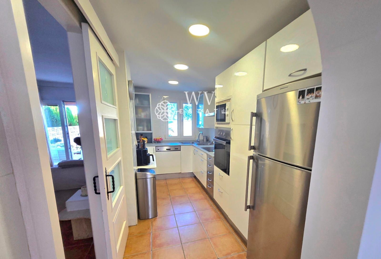 Esta casa adosada muy bien cuidada se encuentra en una calle muy tranquila y tiene un diseño interior moderno.