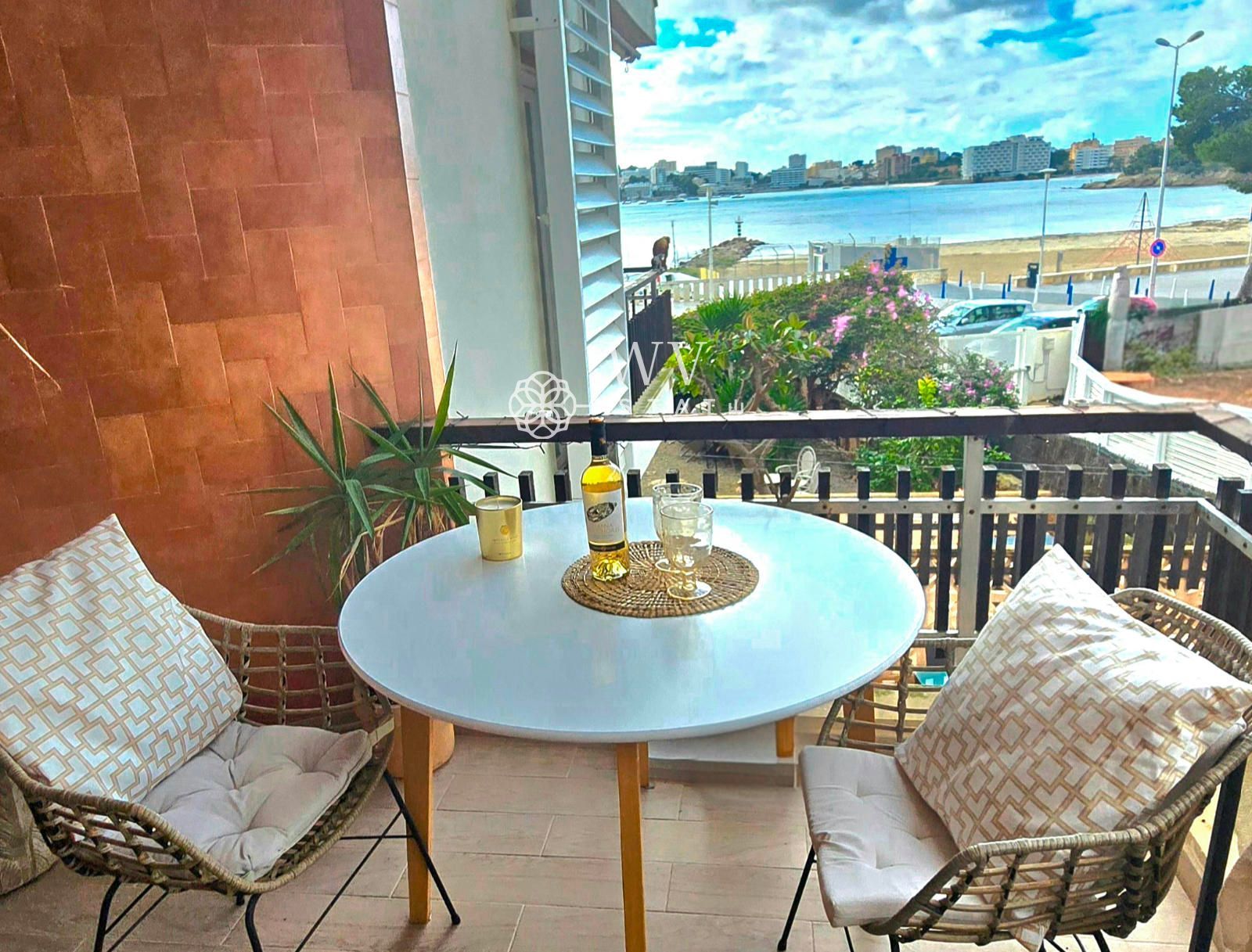 El salón/comedor tiene acceso directo al balcón con vistas al mar.