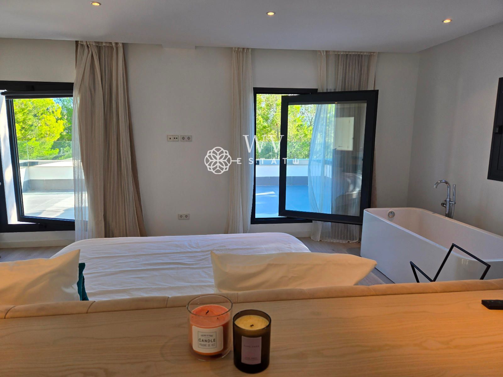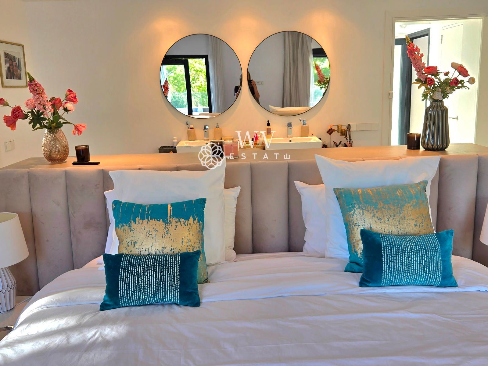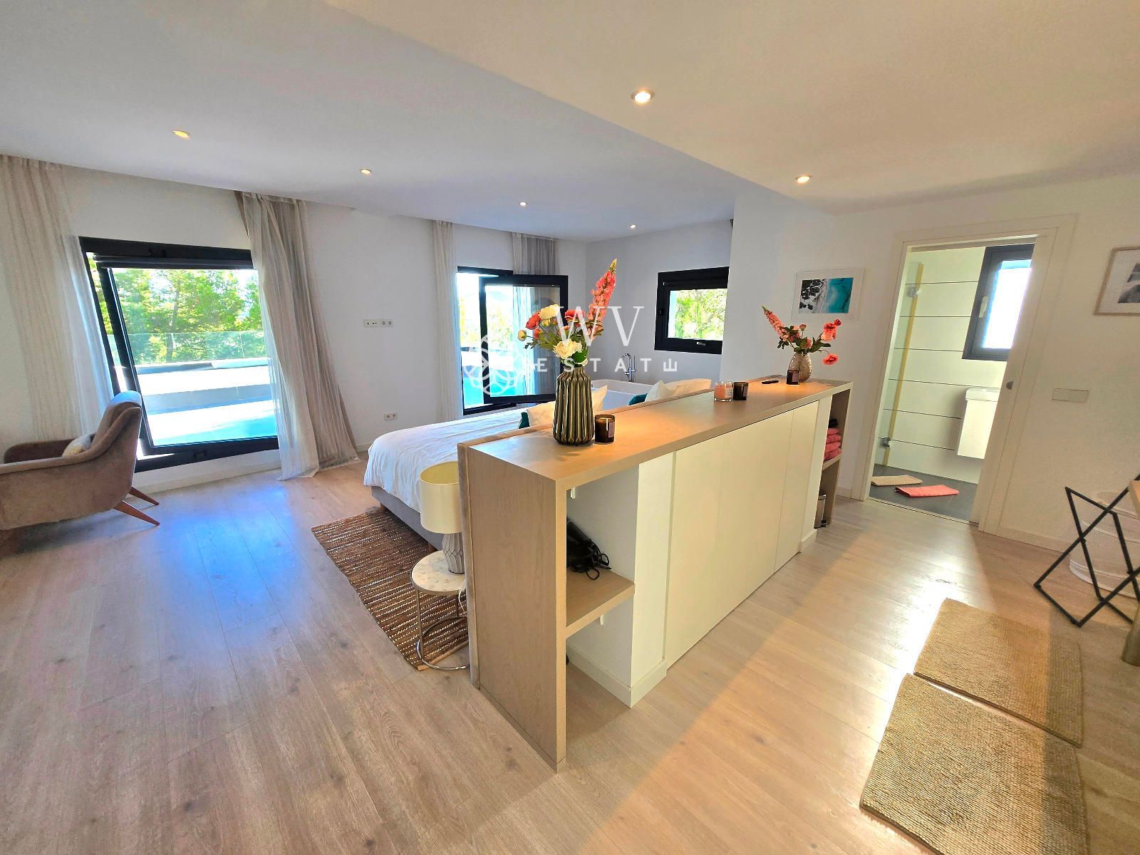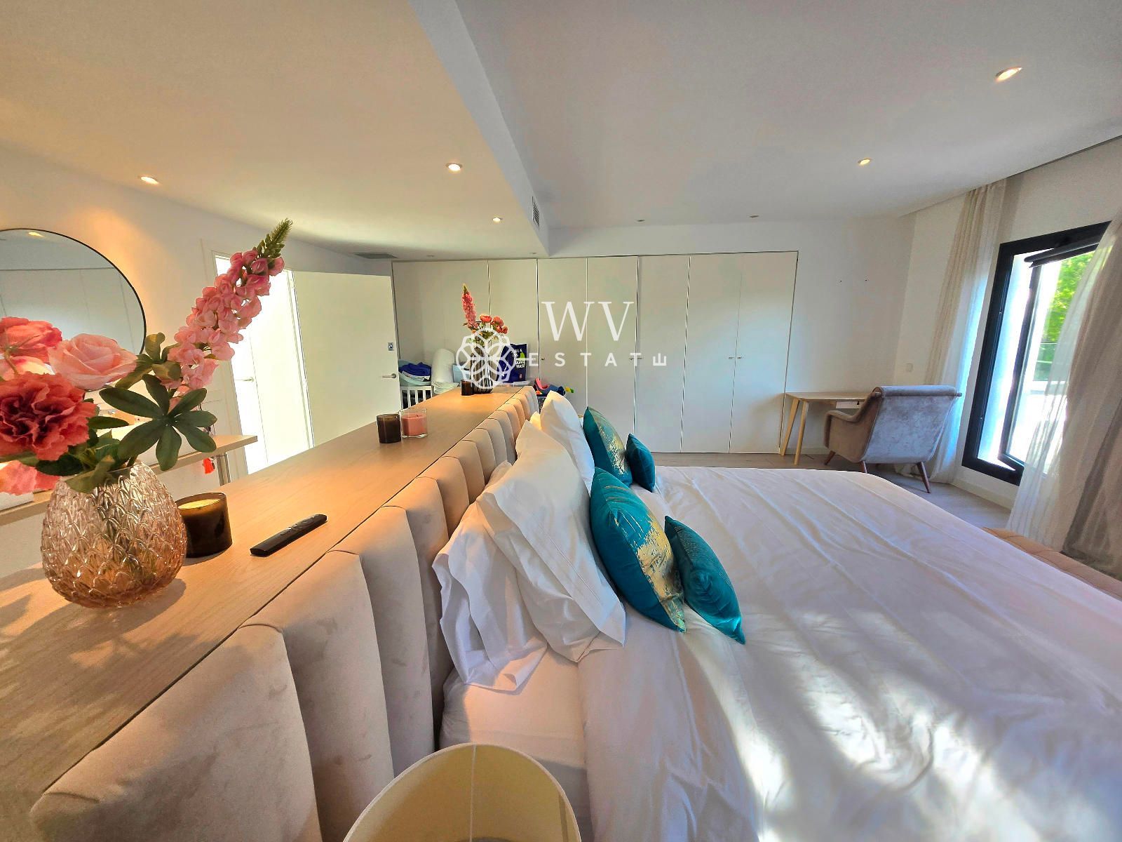 En el exterior, encontramos una espectacular piscina infinity privada rodeada de zonas ajardinadas, ofreciendo un espacio de tranquilidad y confort. La vivienda está equipada con aire acondicionado, garantizando bienestar durante todo el año.