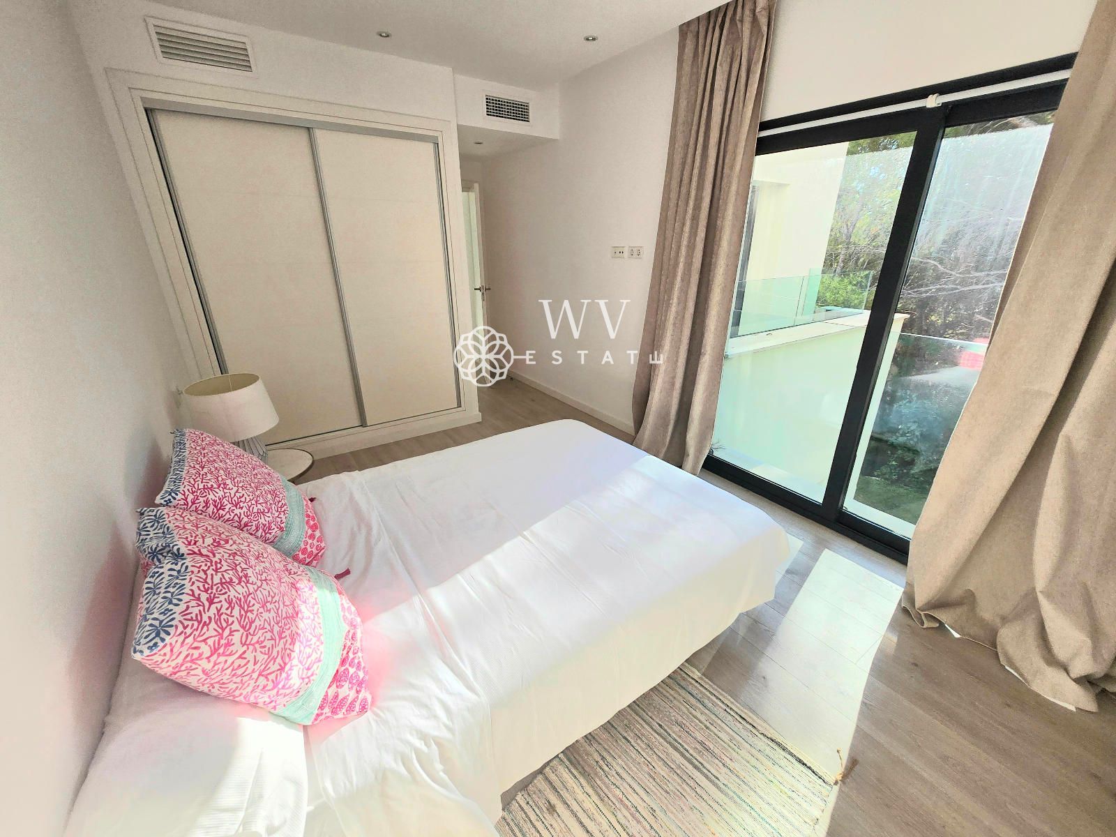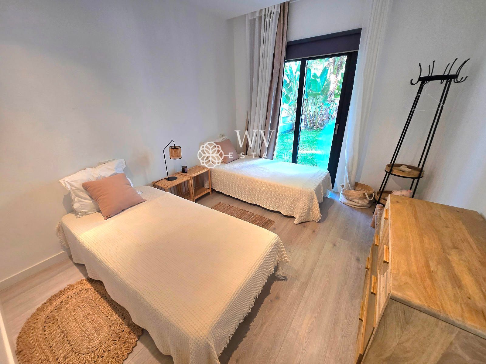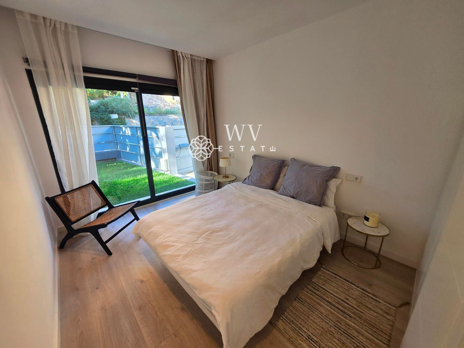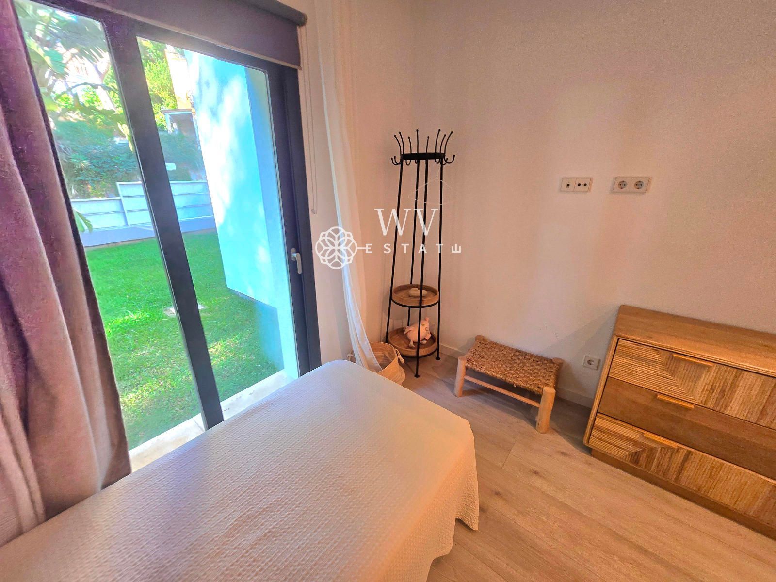 - Planta baja: salón, cocina abierta, 2 dormitorios, uno de ellas con baño en suite, muy luminosas con acceso al jardín